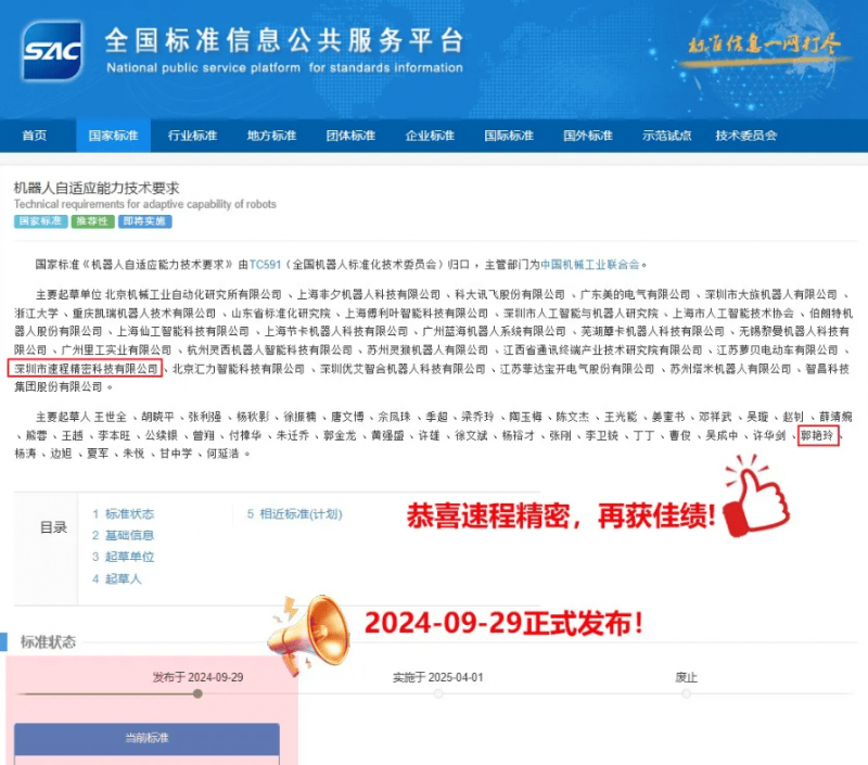 当前,我国正处于制制业转型升级的环节期间,机械人财产做为智能制制的焦点支持,面对着史无前例的成长机缘取挑和。速程细密以尺度制定为抓手,不只巩固了本身正在ZR机械手取自顺应机械人范畴的行业地位,更以现实步履践行了平易近族企业的义务担任。将来,速程细密将继续深耕焦点手艺研发,积极参取更多国表里尺度制定工做,鞭策构成“手艺立异-尺度引领-财产升级”的良性轮回,为我国机械人财产高质量成长赋能,帮力中国制制正在全球价值链中占领更高。前往搜狐,查看更多!