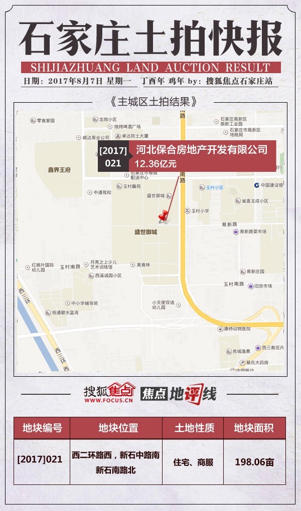 [2017]021号地位于西二环西、新石中南、新石南北,为盛世御城用地,该区域属于西南高,堆积浩繁省高校,人文气味浓重,教育资本优渥。补证项目:盛世御城?。